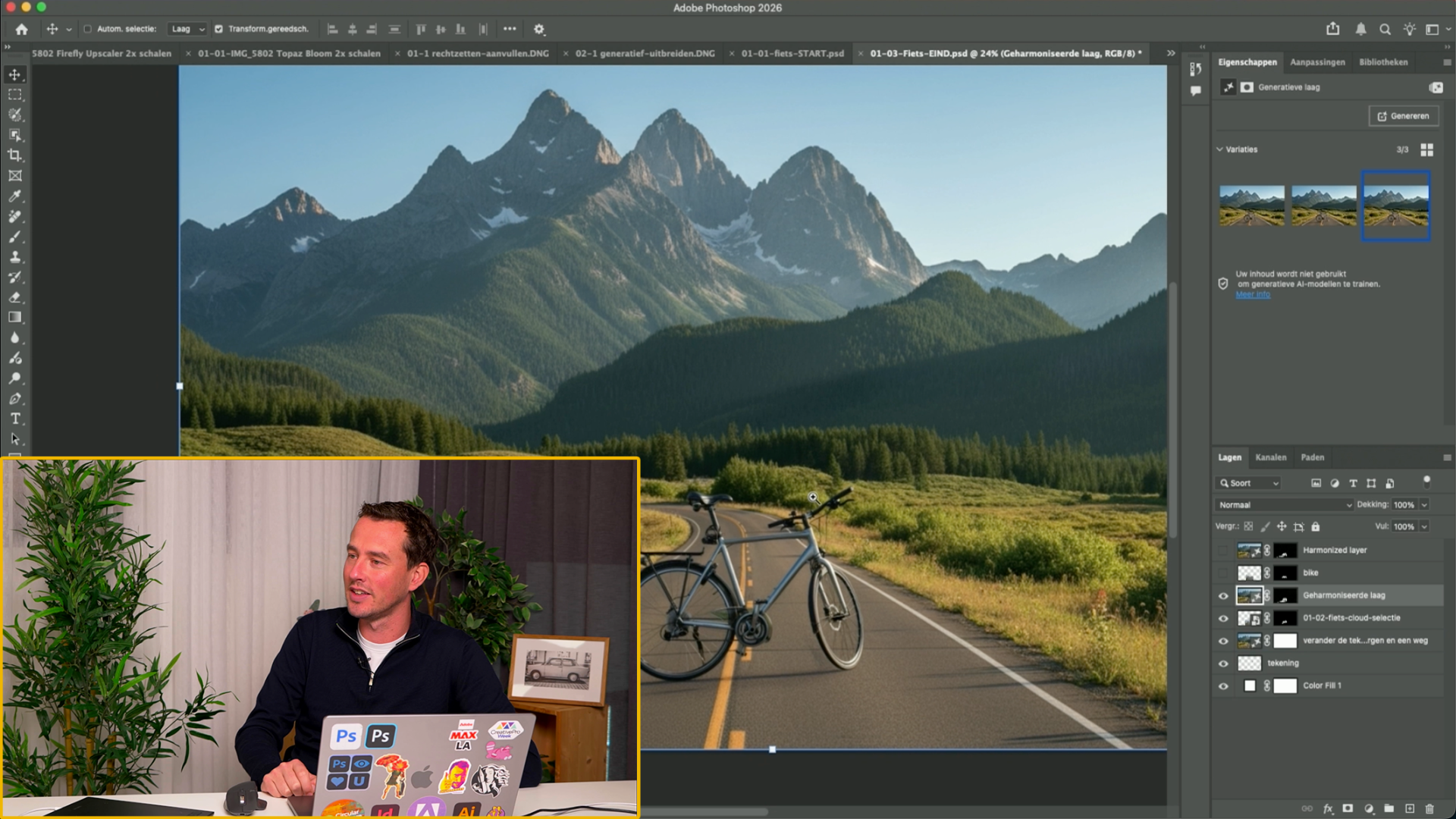 Rob vertelt je in de video's in deze cursus heel veel over het gebruik van AI in Photoshop. Je ziet direct op het scherm welke stappen Rob zet om tot een bepaald resultaat te komen, zodat je dit ook met je eigen foto's kunt proberen. En je hoort de overwegingen over bepaalde keuzes.